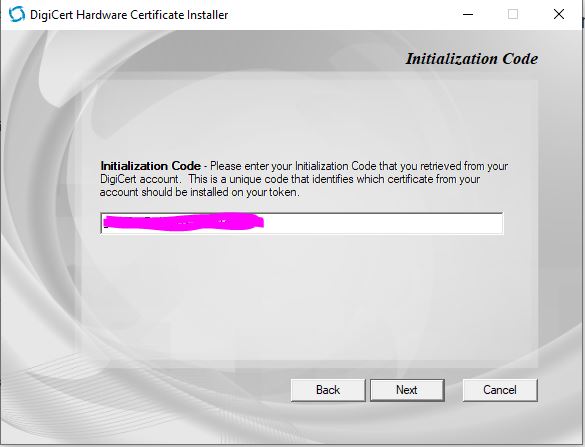 Ở bước này, bạn cần nhập vào mã Unitialization Code được Derasoft cung cấp sau khi chứng thư số Code Signing được cấp phát.