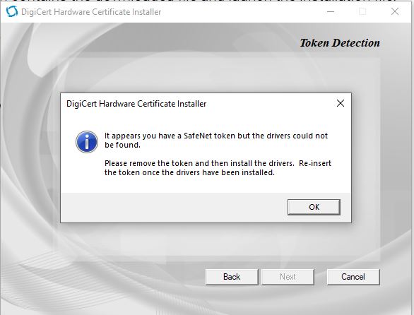 Nếu bạn thấy màn hình sau, nghĩa là bạn chưa hoàn tất quá trình cài đặt driver cho SafeNet eToken 5100CC. Bạn hãy rút token ra, quay lại bước 1 để thực hiện cài đặt driver, sau đó cắm lại token để tiếp tục.