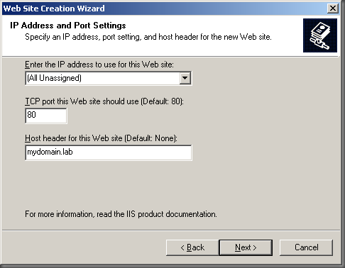 4. Tạo một website mới và đặt tên là "Website Redirect" trên port 80. Mục Host header nhập vào tên miền của Website chính. Trong mục Website Home Directory bạn chọn 1 thư mục tạm nào đó (tốt nhất là 1 thư mục rỗng). Trong mục Website Access Permissions chọn quyền Read.